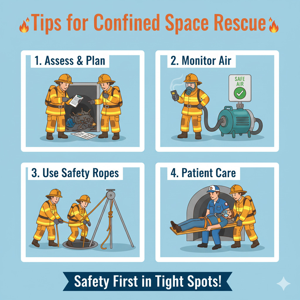 - Meticulous planning, proper communication, and utilizing communication devices are fundamental for successful Confined Space Rescues, ensuring coordinated efforts and streamlined operations.